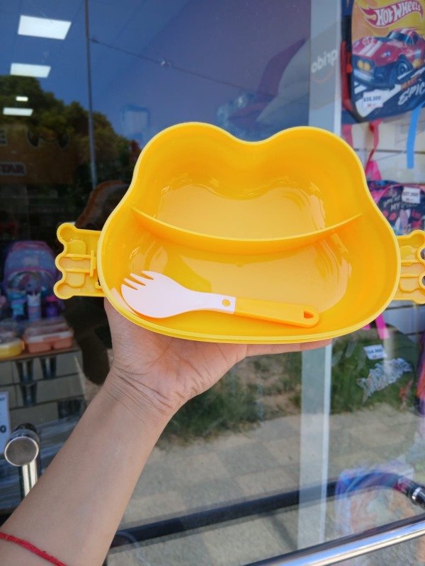 Cuenta con divisor interno para separar alimentos, cierre lateral seguro fácil de abrir por manos pequeñas y incluye un cubierto plástico, lo que lo convierte en una opción práctica para el cole, jardín o salidas